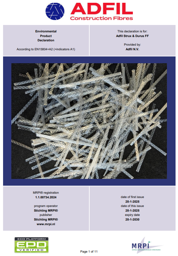 Adfil Strux and Durus FF32 are synthetic fiber reinforcements designed for concrete applications. Both products are manufactured using high-quality polymers, primarily polypropylene (PP) and high-density polyethylene (HDPE), sourced from various plastic suppliers and recyclers.