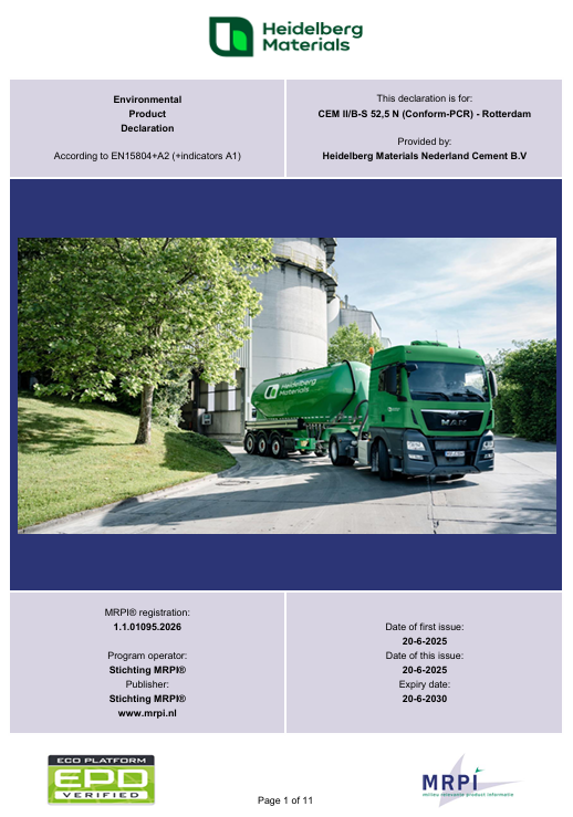 Alle EPD's van Heidelberg Materials Nederland Cement B.V.