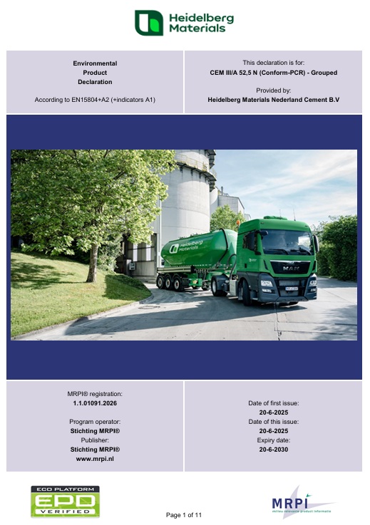 Alle EPD's van Heidelberg Materials Nederland Cement B.V.