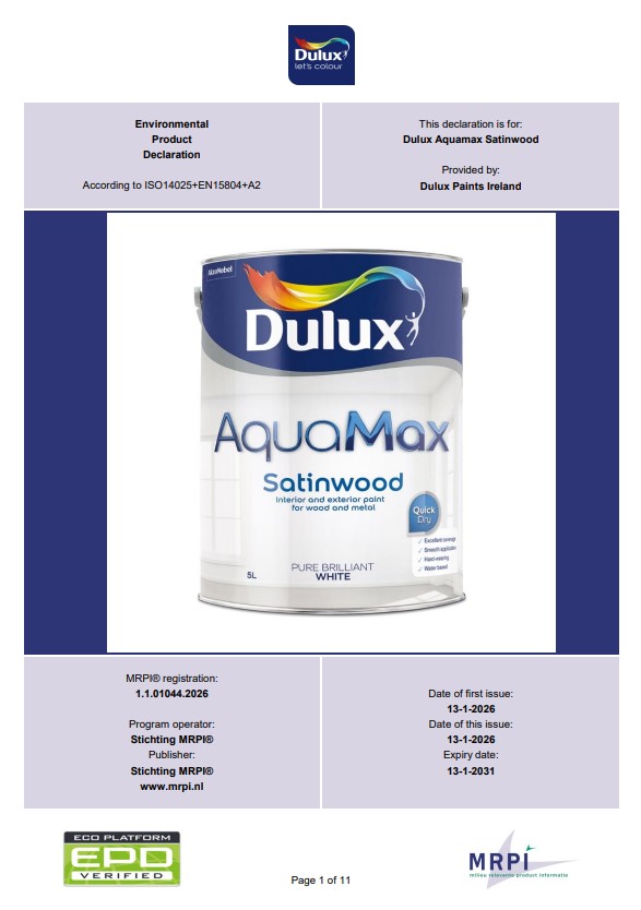 Dit is de eerste datum waarop de MRPI®-EPD gepubliceerd is.