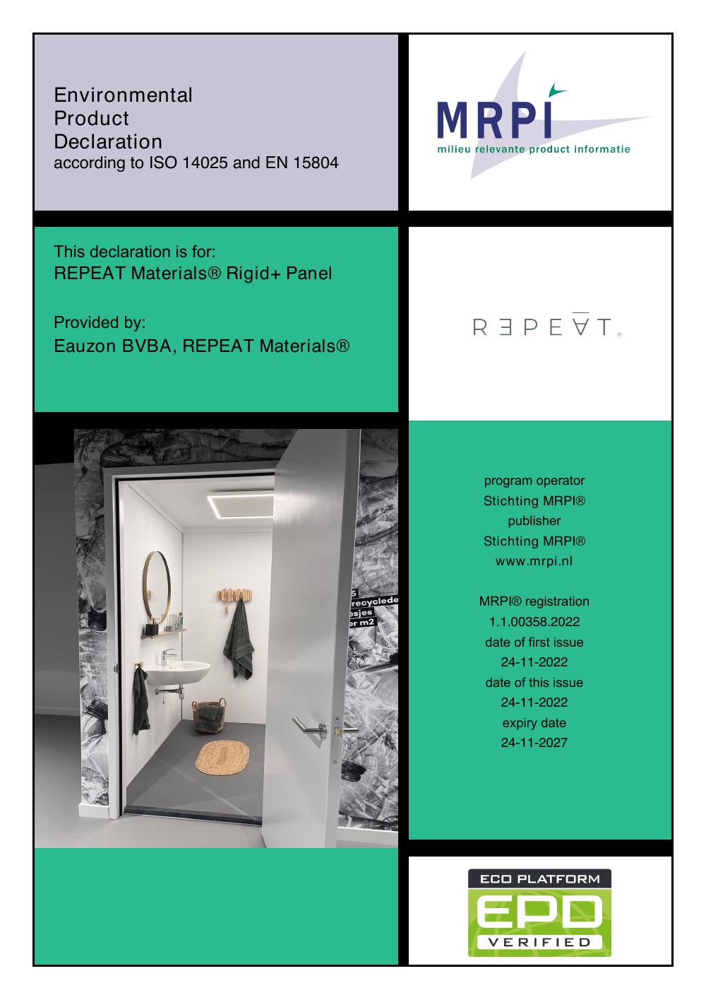 Alle EPD's van Eauzon BVBA, REPEAT Materials®