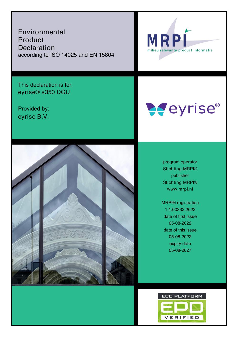 De ECO Platform registratie was een nummer van 2017 tot 2021; na 2021 worden alle MRPI®-EPDs gepubliceerd op een portal: het ECO Portal.
