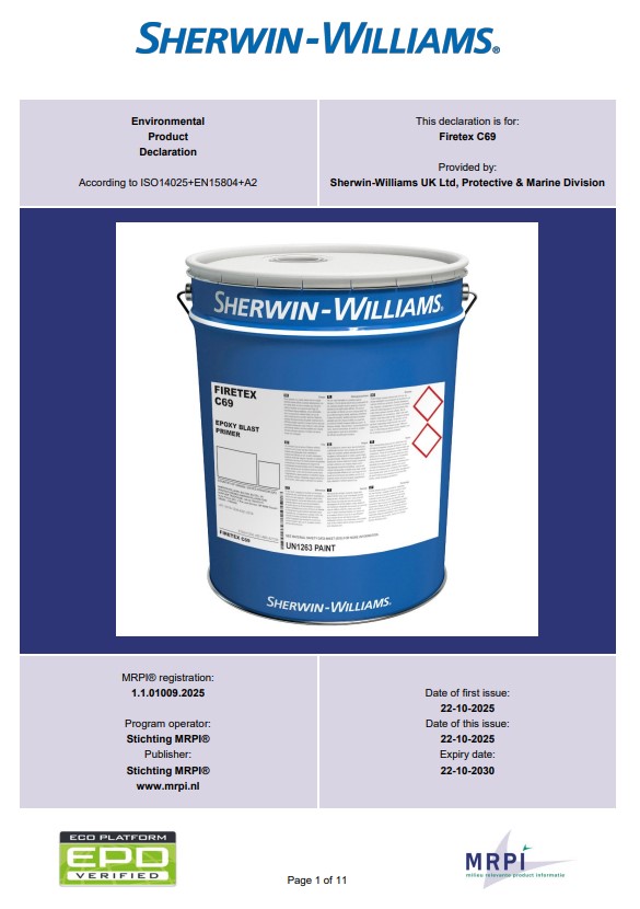 Alle EPD's van Sherwin-Williams UK Ltd, Protective & Marine Division