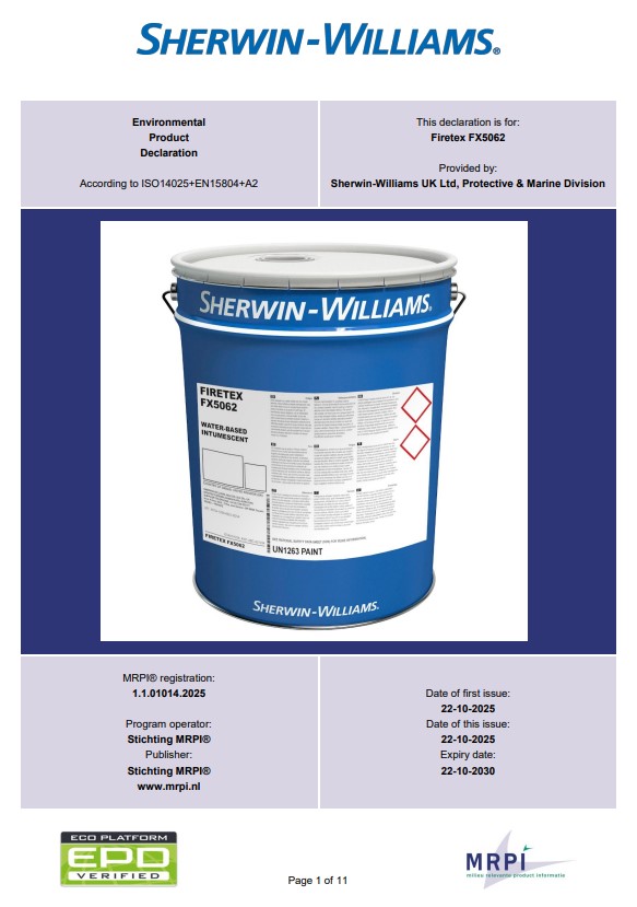 Alle EPD's van Sherwin-Williams UK Ltd, Protective & Marine Division