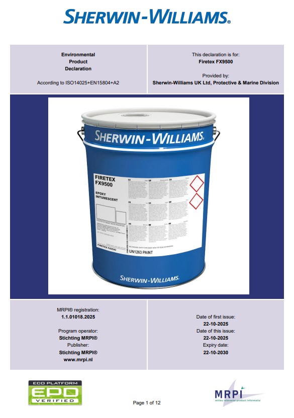 Alle EPD's van Sherwin-Williams UK Ltd, Protective & Marine Division