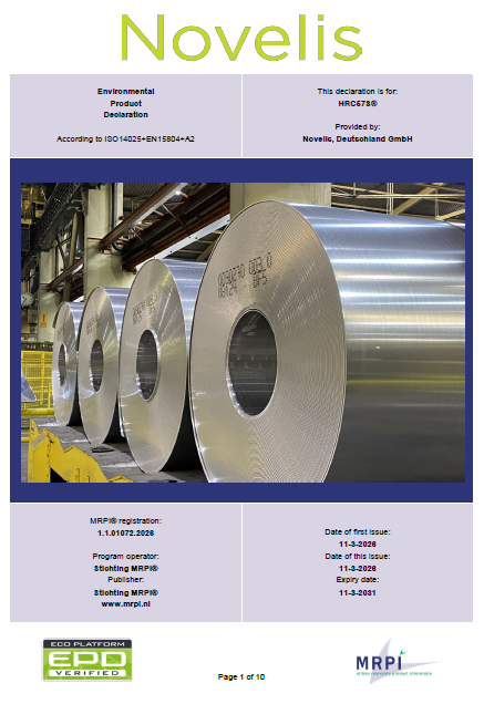 This product is a weighted average product calculated from 4 variations HRC57S®. Novelis HRC57S® is a decorative anodizing quality made from an ingot containing more than 90% recycled material (including pre- and postconsumer scrap).