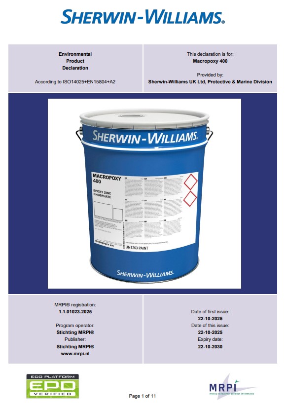 Alle EPD's van Sherwin-Williams UK Ltd, Protective & Marine Division