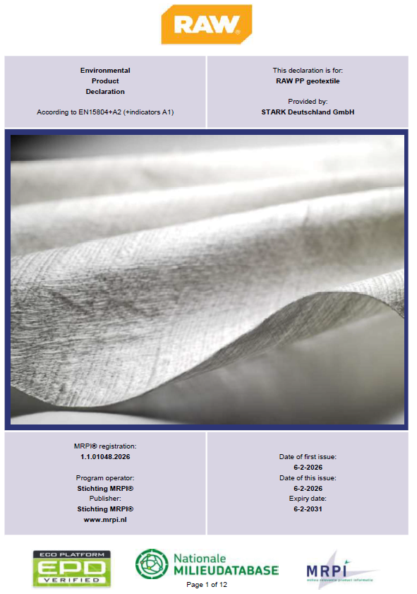 RAW PP geotextile is available in various brands and versions, all of which can be viewed on the website of STARK Deutschland GmbH. RAW PP geotextile is offered in different configurations. The products are used in a wide range of applications.