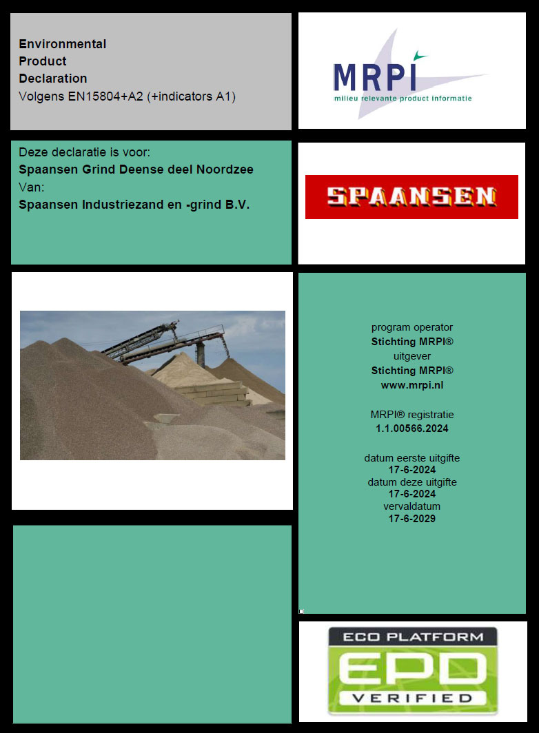Alle EPD's van Spaansen Industriezand en -grind B.V.